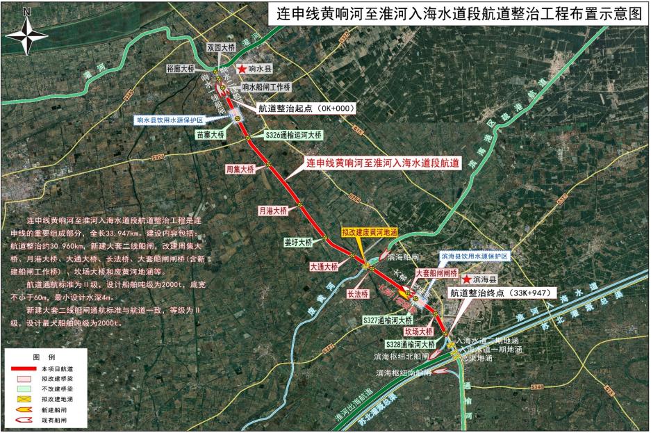 連申線黃響河至淮河入海水道段航道整治工程全長33.95公里,概算總投資40.21億元。作為我省干線航道建設“撥改投”試點項目中投資額度較大、項目類型豐富的標志性項目,其建設內容主要包括航道工程、船閘工程、橋梁工程、地涵工程。該工程的實施,將有力打破鹽城南北向水運主通道通航“瓶頸”,實現連申線與淮河入海水道二期配套通航工程“并線段”全線貫通,完善鹽城港“一港四區”高等級內聯航道網絡,助力地方基礎設施能級提升。