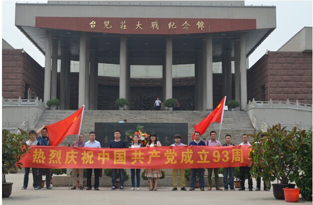 6月29日,為紀念中國共產黨建黨93周年,徐州華遠置業有限公司黨支部組織全體黨員同志,赴山東棗莊“臺兒莊大戰紀念館”追憶歷史,緬懷先烈,重溫入黨誓詞。